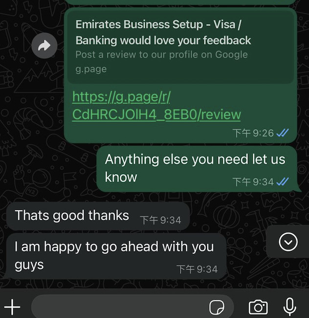 Great friendly team, exactly the support and advice that you need to set up in the UAE, got to be the first choice, special thanks to Ruzy for all your help, Thank you
